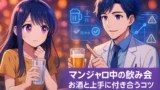 飲み会・外食が続くとき アルコール・塩分のとりすぎ お酒1杯ごとに水1杯をセットにする・翌日は意識的に水と野菜スープを